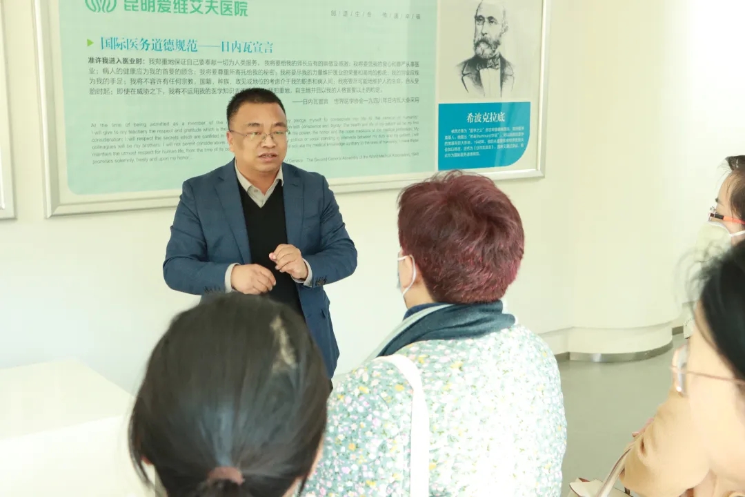 随后,昆明爱维艾夫医院行政副院长李忠垚引领参会人员参观医院。在参观过程中,李副院长详细介绍了医院的发展历程、先进的医疗设备、精湛的专业技术以及以患者为中心的服务理念。通过实地参观,与会者亲身感受到了昆明爱维艾夫医院在生殖医学领域的坚实基础与进步发展,以及对高质量医疗服务的不懈追求。